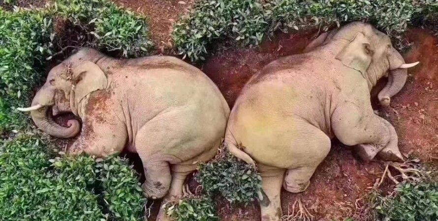 "Пока люди проводят социальные дистанцирования, группа из 14 слонов ворвалась в деревню в провинции Юнань в поисках кукурузы и другой пищи. В итоге они выпили 30 кг кукурузного вина и настолько напились, что уснули в ближайшем чайном саду", – пишет издание.