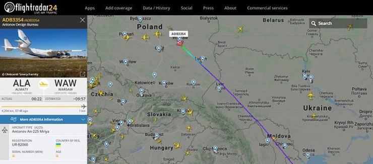 В варшавском аэропорту имени Шопена Ан-225 "Мрия" приземлился около 10 часов утра. Перелет от Казахстана занял 7,5 часов.