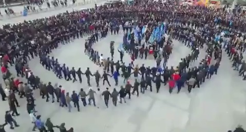 "Жители Якутии в национальных костюмах устроили хоровод, размеры которого лучше всего оценить по кадрам, которые сделал беспилотник", – сказал ведущий новостной программы.