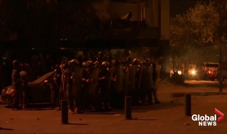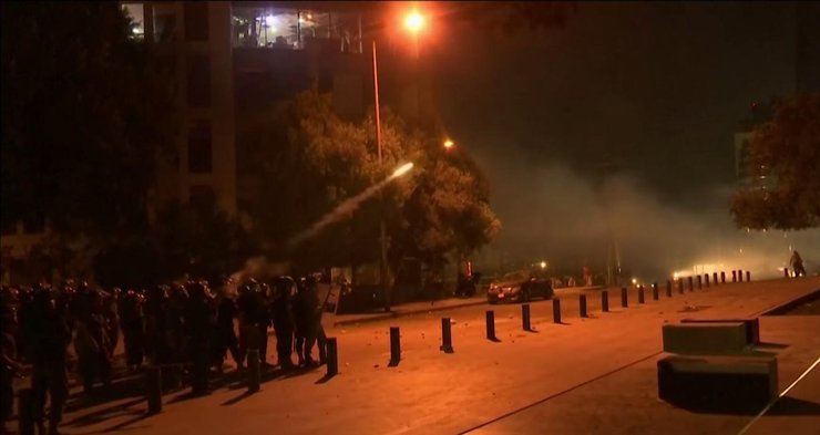 На видео можно разглядеть, что протестующие бросают в полицию камни. Канал передет, что столкновения произошли поскольку "в городе продолжал расти гнев", из-за смертоносного взрыва во вторник, в результате которого по меньшей мере 137 человек погибли и тысячи были ранены.