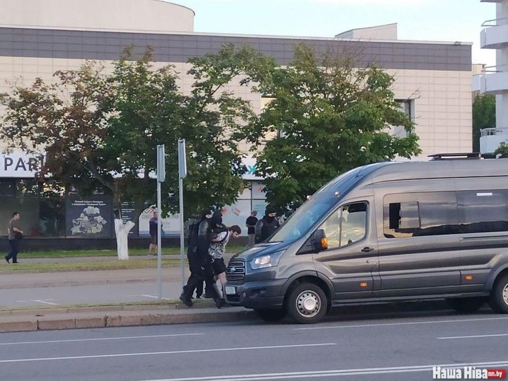 Как сообщила в 19:00 Facebook-группа "Чай з малинавым варэннем", одно из задержаний произошло в центре города в Парке победы неподалеку от стелы "Минск – город-герой":
