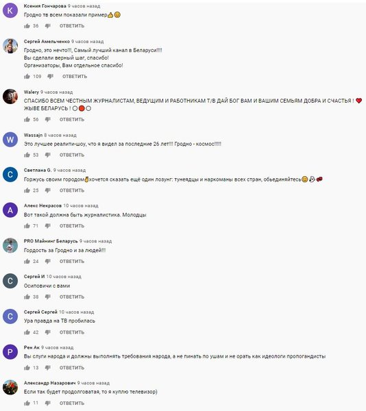 Под указанный ролик на YouTube-канале телеканала пришли сотни комментаторов со словами поддержки и восхищения: