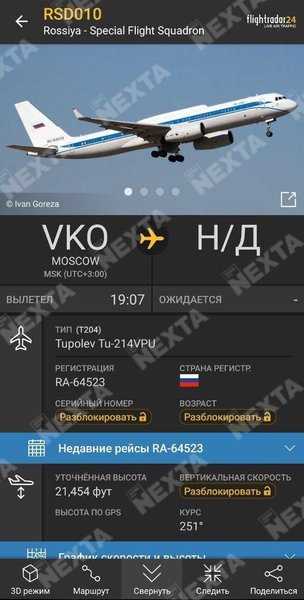 "Данные из открытых источников свидетельствуют, что на Ту-214ВПУ RA-64523 может осуществлять перелеты директор спецслужбы Александр Бортников", – говорится в сообщении.