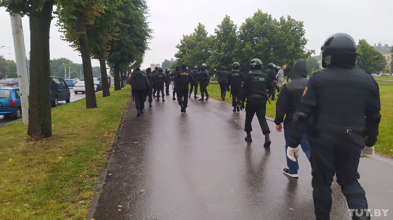 У проходной Минского тракторного завода (МТЗ) ОМОН разгонял собравшихся людей. Среди протестующих были и работники МТЗ.