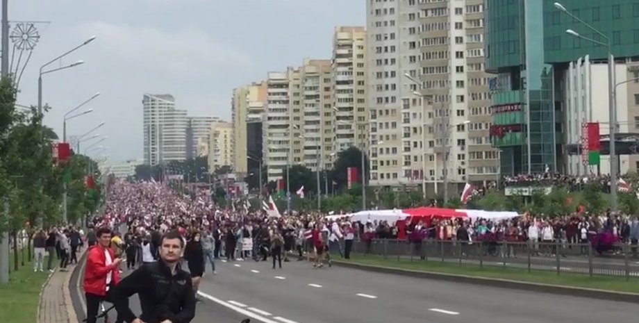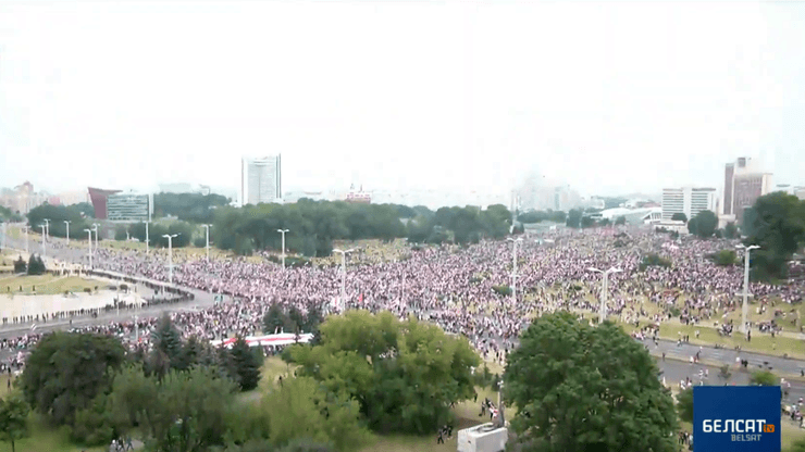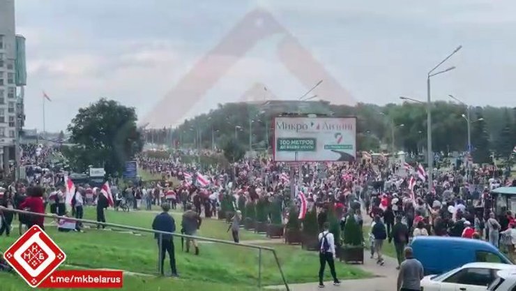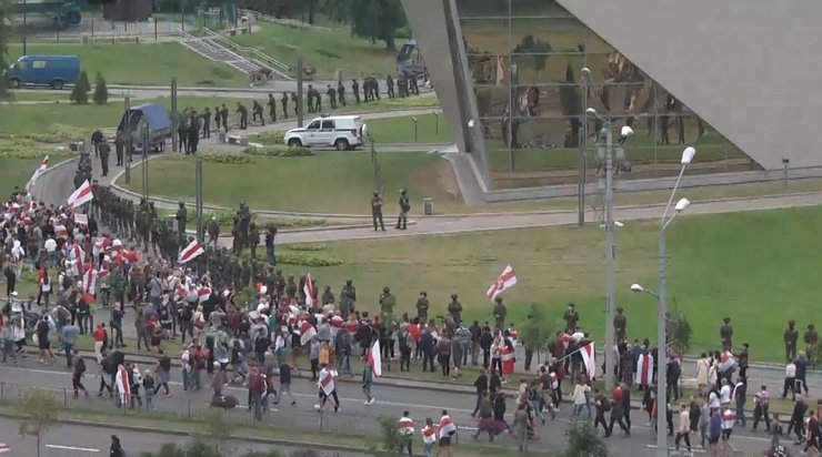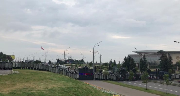 Лидеры оппозиции Мария Колесникова призвала двигаться, колонной к Дворцу независимости – к резиденции главы государства. Вход к дворцу охраняет ОМОН, стоит спецтехника,