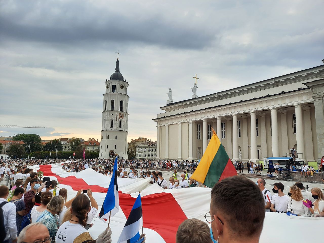 В этот раз акция была поскромнее, цепь составила 32 км. От кафедрального собора в центре Вильнюса до границы с Беларусью. На границе участники акции запустили связку шаров с флагом и ветром их снесло в сторону Беларуси.