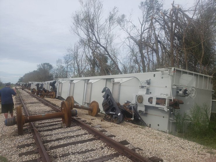 Товарный поезд, который ураганом снесло с колес и рельс/Фото: Twitter Austin Kellerman