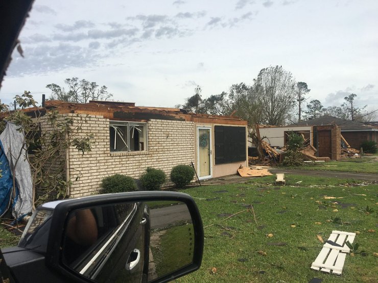 Дом жителя Лейк-Чарльз Брайана Эмфингера после урагана "Лаура". Мужчина написал, что он с семьей эвакуировался, но когда вернулся через 24 часа, то обнаружил свое жилище без крыши. Также не устояло ни одно из деревьев, что росло рядом.