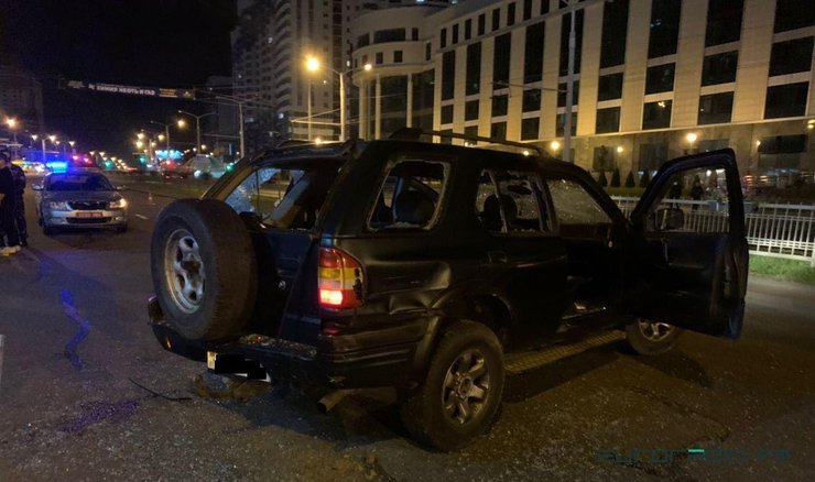 Разбитая силовиками машина на одном из центральных проспектов Минска. Водителя и пассажиров задержали