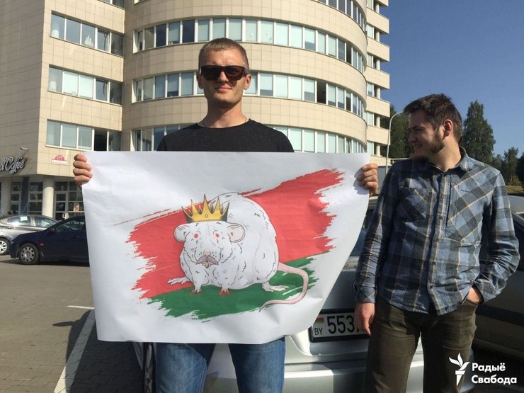 Символом недовольства Лукашенко в этот день стали плакаты с изображением крысы и короны, которые надели многие демонстранты, сравнивая тайную, уже шестую инаугурацию "бацьки" с коронацией.