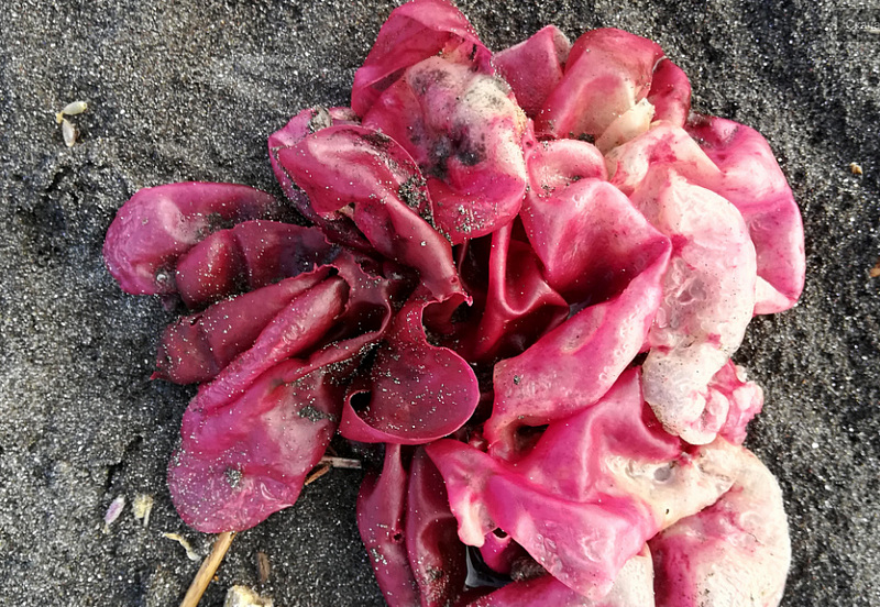 "На фото присутствуют красные водоросли. Они обитают на большой глубине (от 15 метров), и шторма им не страшны. Оказаться на берегу они могут только в крайне редком случае и уж точно не в таких количествах", – сказал доктор биологических наук Сергей Коростелев, один из координаторов Фонда в России.