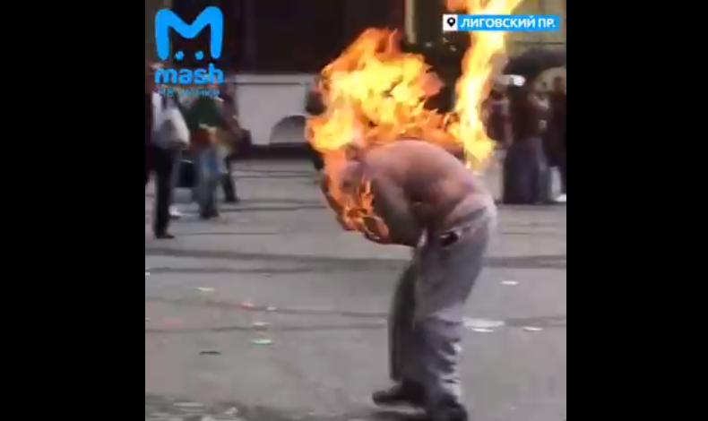 Российский Тelegram-канал Mash написал, что "70-летний Борис Александров поджег себя на многолюдной площади у ТЦ. Медикам удалось его спасти, с ожогами 45% тела мужчину увезли в больницу им. Джанелидзе. Известно, что он состоял на учете в психоневрологическом диспансере и появлялся в поле зрения полиции".