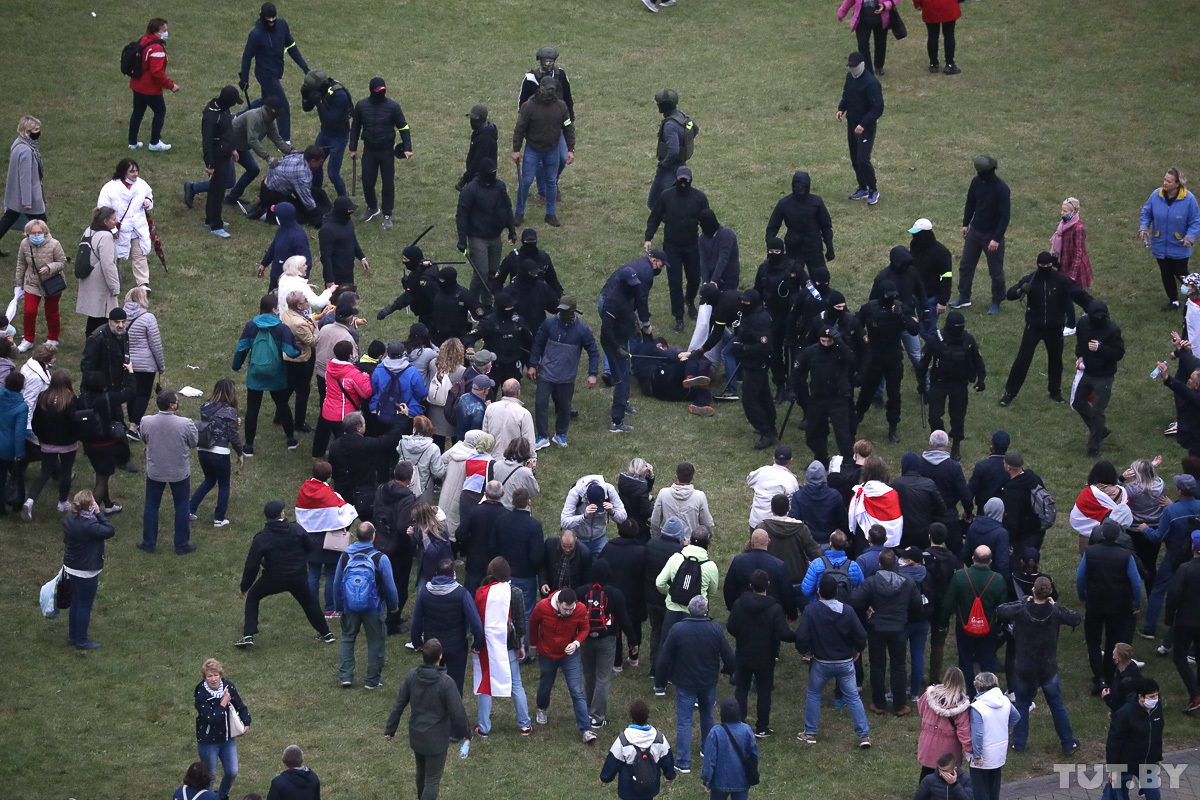 Неизвестные в балаклавах, спортивных костюмах с дубинками и ОМОН избивали собравшихся демонстрантов. В том числе, лежачих.