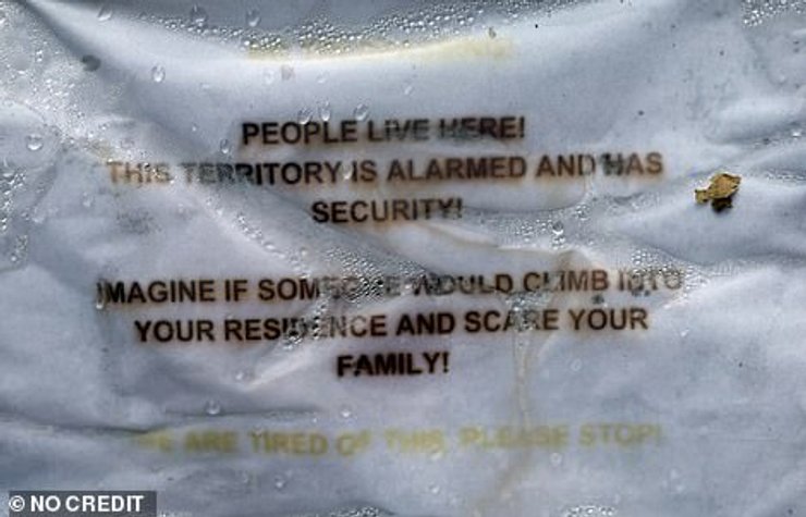 Также он утверждал, что на воротах есть записка, которая гласит: "Здесь живут люди! Представьте, если бы кто-то забрался в вашу резиденцию и напугал вашу семью! Мы устали от этого, пожалуйста, прекратите!".
