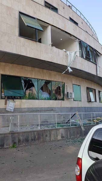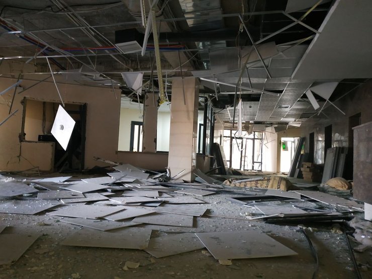 "ВС Азербайджана сбросили авиабомбу на Республиканскую больницу в Степанакерте, прямо на здание роддома", – отметил Пегов у себя на канале днем в среду и опубликовал снимки с места событий: