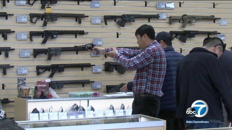 Покупатели в магазине оружия