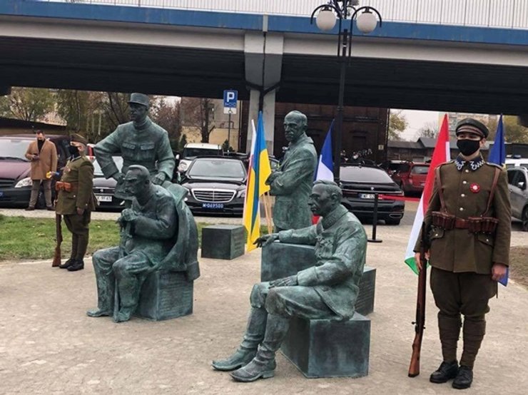 Монумент состоит из четырех статуй: лидера Польши маршала Юзефа Пилсудского, венгерского премьера Пала Телеки, французского политического деятеля Шарля де Голля, который был в то время военным советником польской армии, и атамана Симона Петлюры.