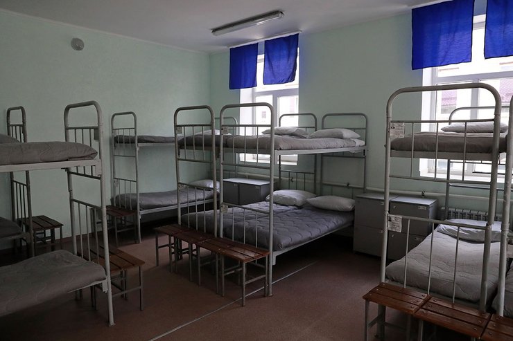 Осужденные живут в помещениях барачного типа по 20−30 человек в комнате, а работают отрядами по 100−150 человек.