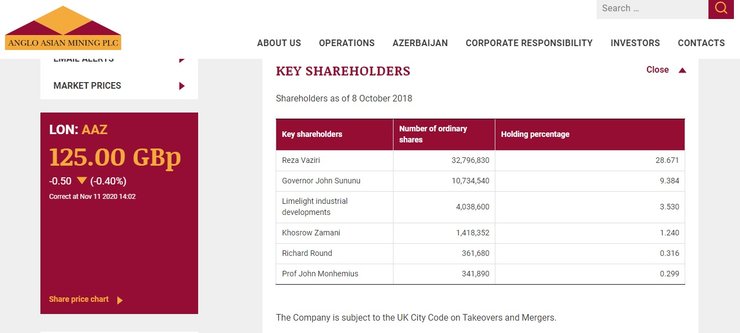 Сообщается также, что у Anglo Asian Mining есть еще две контрактные территории на ранее "оккупированных Арменией территориях" – Соутели и Гызылбулах. Как отметили британцы, они находятся "в тесном сотрудничестве с Правительством Азербайджаном по дальнейшему развитию Зангиланского района".