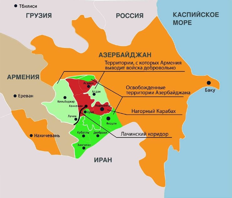 Так выглядит Нагорный Карабах на карте после подписания договора о прекращении огня: