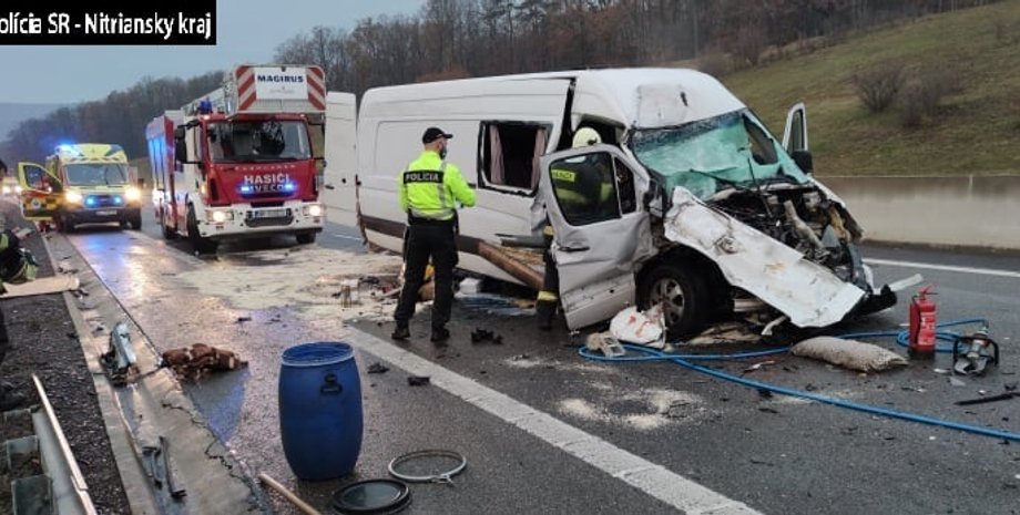 Патрульные написали, что ДТП произошло на трассе R1 в районе города Тековске Немце в Нитрянском крае.