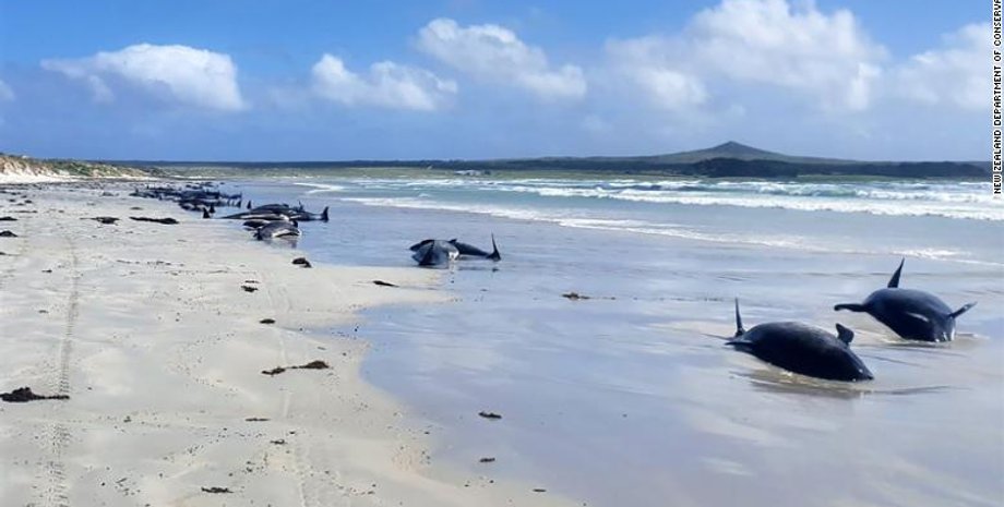 В Департаменте охраны природы отмечают, что киты часто выбрасываются на пляжи Новой Зеландии, однако самое массовое подобное явление произошло в 1918 году, тогда погибли более 1000 животных.