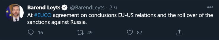 Об этом в четверг, 10 декабря сообщил у себя в Twitter пресс-секретарь председателя Евросовета Баренд Лейтс. "Есть соглашение о продлении санкций против России" – написал Лейтс.
