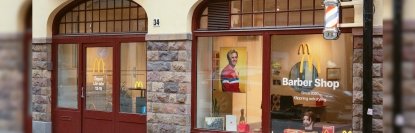 Сеть McDonald"s в Швеции открыла первую специализированный барбершоп, где делают только один вид стрижки – длинную, раздвоенную челку, напоминающую букву "М" логотипа компании.