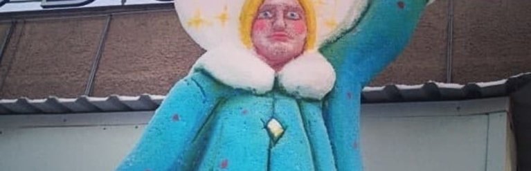 Установленная у городского вокзала скульптура из снега, которая должна вызывать ассоциации с радостью и праздником, на самом деле выглядит слишком сурово и даже пугающе. Фотография Снегурочки уже разлетелась в соцсетях, вызвав немало насмешек.
