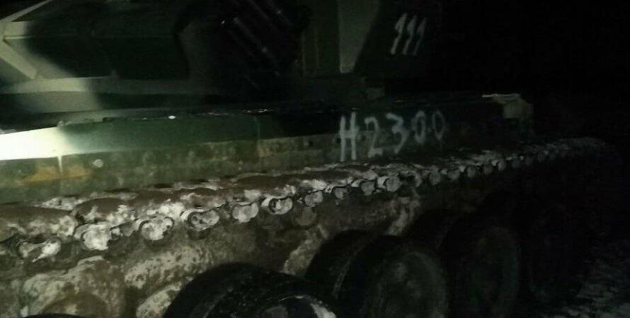 На представленных кадрах видно, как человек в темноте подбирается к платформе и бросает в танк емкость с неизвестным содержимым. После этого на танке появляется огонь.