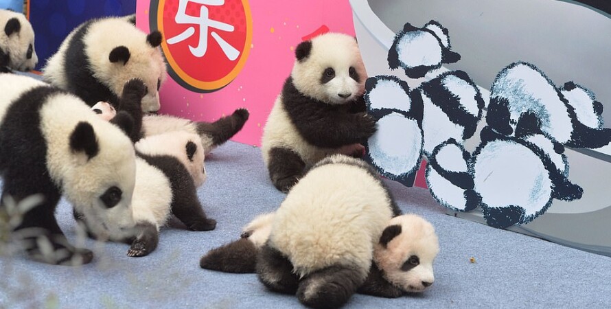 В Китае показали девять маленьких панд, родившихся во время пандемии
