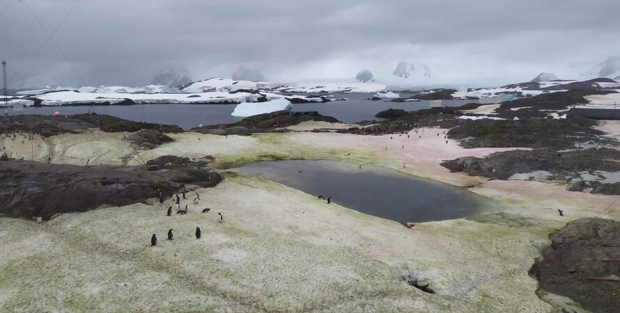 В конце антарктического лета в Антарктиде снег кардинально изменил свой цвет. Из белоснежного он стал розовым и зеленым. Об этом сообщили украинские ученые со станции "Академик Вернадский".