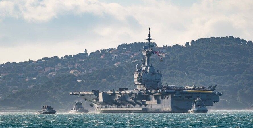 Флагман ВМС Франции авианосец "Шарль де Голль" (Charles de Gaulle) во главе авианосной ударной группы (АУГ) покинул порт Тулон для развертывания в зоне проведения антитеррористических миссий "Шаммаль" и "Клемансо-21".