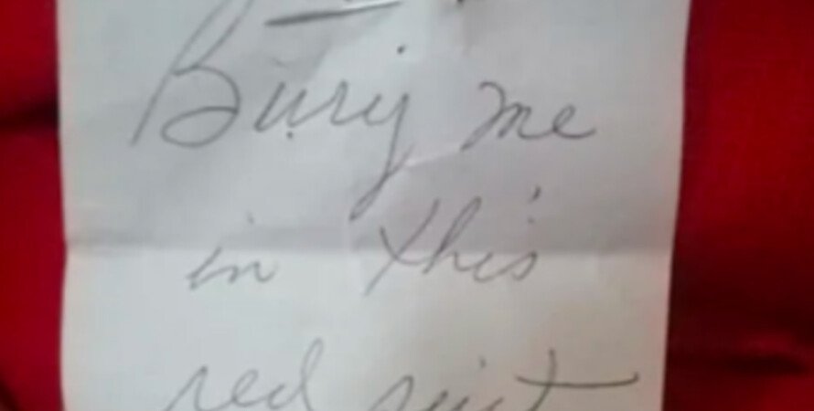 Уже повнимательнее рассмотрев жакет, женщина, имя которой не называется, нашла в кармане записку, которая была пришпилена с внутренней стороны с помощью булавки. "Похороните меня в этом пиджаке", – говорилось в ней.