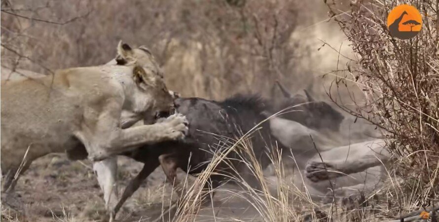 Антилопы гну убежали от леопарда и стали добычей львов на глазах у туристов (видео)