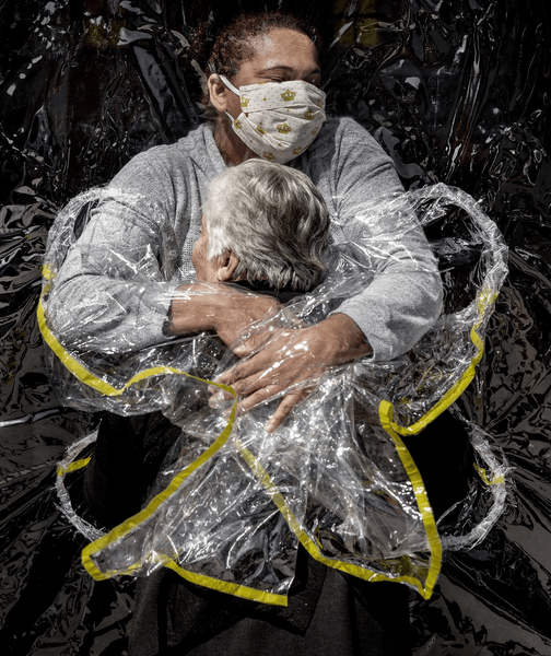 На фотографии изображено первое объятие 85-летней женщины Розы Лузии, которая впервые за 5 месяцев обнимает родственника. Из-за пандемии коронавируса в Бразилии были закрыты все дома престарелых.