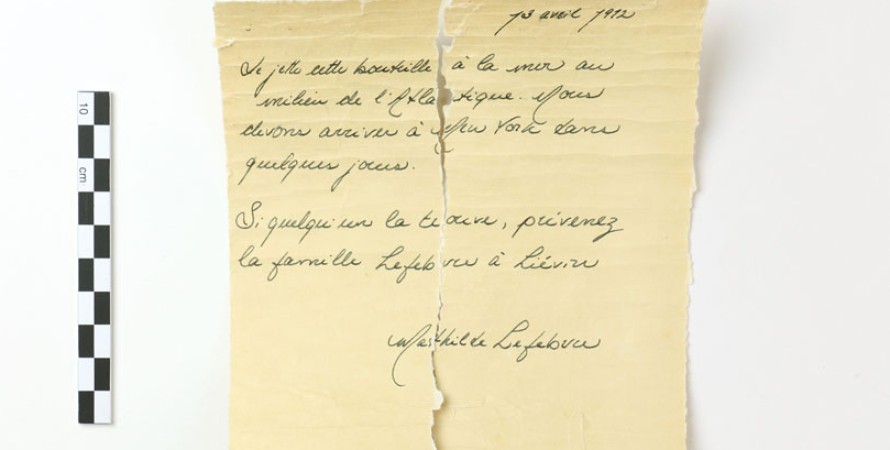 "Я бросаю эту бутылку в море посреди Атлантики. Мы должны прибыть в Нью-Йорк через несколько дней. Если кто-то ее найдет, то сообщите об этом семье Лефевров в Левен", — написано в письме.