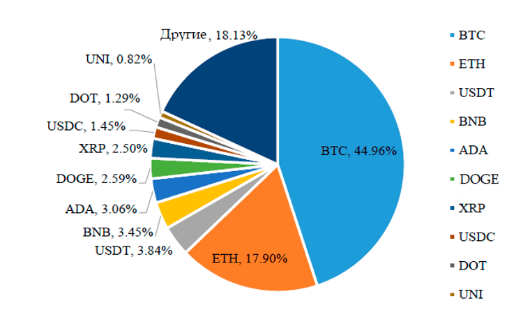Рыночная стоимость 10 лучших криптовалюта выросла, распределение рыночной доли оставался стабильным. 13 июня 2021 общая рыночная капитализация 10 лучших криптовалюта составляла 1333,7 миллиарда долларов США, увеличившись на 1,36% по сравнению с прошлой неделей, составив 81,87% общей рыночной капитализации криптовалюта, увеличившись на 2,70% по сравнению с прошлой неделей. Доля рыночной стоимости проекта TOP-10 в основном стабильна. Доминирование BTC составил 44,96%, увеличившись на 4,55% по сравнению с прошлой неделей.