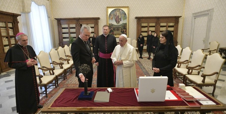 Президент Литвы (слева) Монсеньор Висвальдас Кулбокас (в центре) и Папа Франциск (справа) | Фото: vaticannews.va