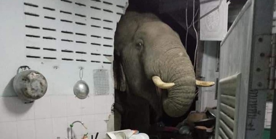 "Он опять пришел готовить": в Таиланде слон разрушил стену дома, чтобы украсть еду с кухни (видео)