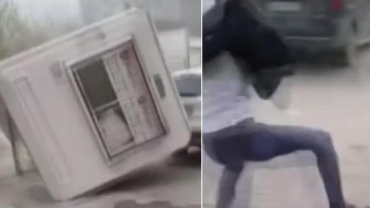 В районе Авджилар из-за ветра перевернулась будка охраны с работником внутри.