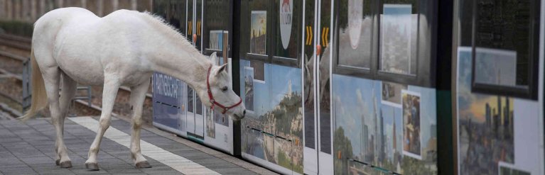 Лошадь во Франкфурте сама гуляет по городу, "останавливает трамваи и вызывает улыбки"