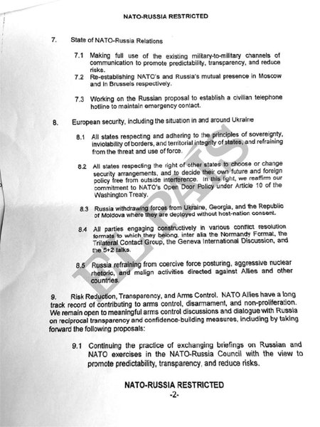 Кроме того, и НАТО, и США заявили, что не собираются вести переговоры о том, кто может или не может быть членом Альянса. Также союзники высказали намерение вернутся к Договору о ликвидации ракет средней и меньшей дальности (по инициативе Дональда Трампа США вышли из этого договора в 2018 году).