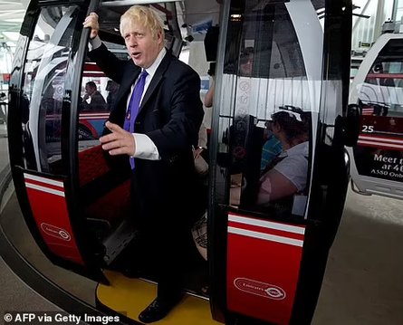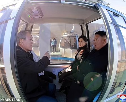 Борис катается на недавно открытой канатной дороге Emirates на юге Лондона в 2012 году, а Ким катается на такой же канатной дороге с президентом Южной Кореи Мун Чжэ Ином в 2018 году.