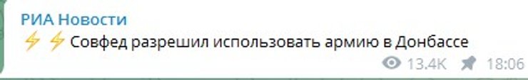 "Совфед разрешил использовать армию в Донбассе", – говорится в сообщении.