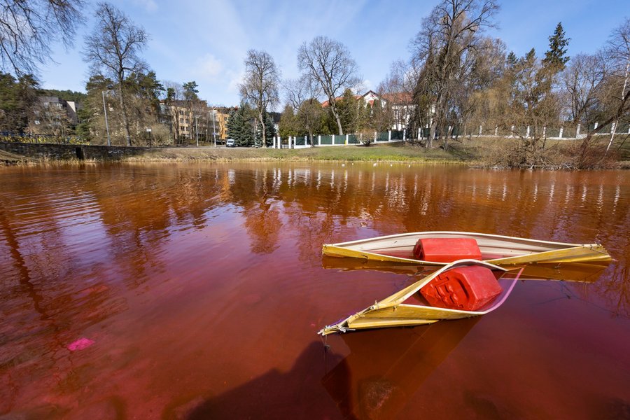 Озеро напротив посольства России в престижном районе Вильнюса Жверинас окрасили в цвет крови. Об этом написал литовский портал Delfi со ссылкой на представителей властей города.