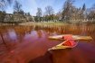 Олимпийская чемпионка по плаванию из Литвы Рута Мейлутите переплыла окрашенный в красный цвет пруд.