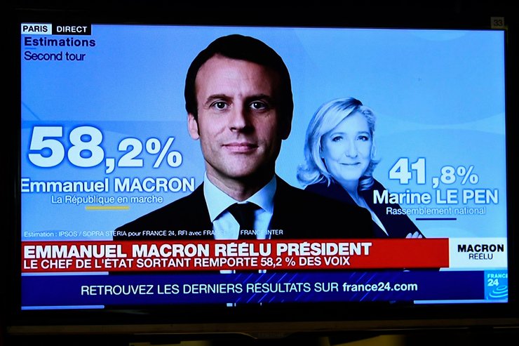 Все наиболее влиятельные французские экзит-поллы отдали Макрону более 58% голосов избирателей. Его соперница Марин Ле Пен поблагодарила сторонников и признала поражение.