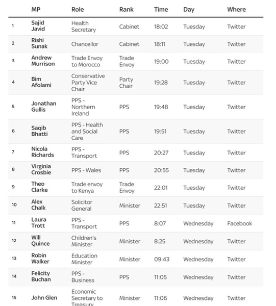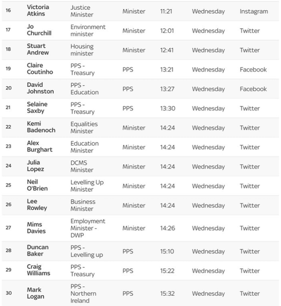 Cписок замыкают члены парламента, консерваторы Рут Эдвардс и Питер Гибсон, а также министр по вопросам защиты Рейчел Маклин. К ним позже присоединились торговый представитель Дэвид Дугид и секретарь парламента Джеймс Сандерленд.