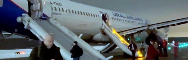 "Всех спустили на землю по надувному трапу и отправили обратно в "Домодедово". В зоне вылета торжественно наградили бутылкой воды. Пострадавших нет", — пишет канал Mash.